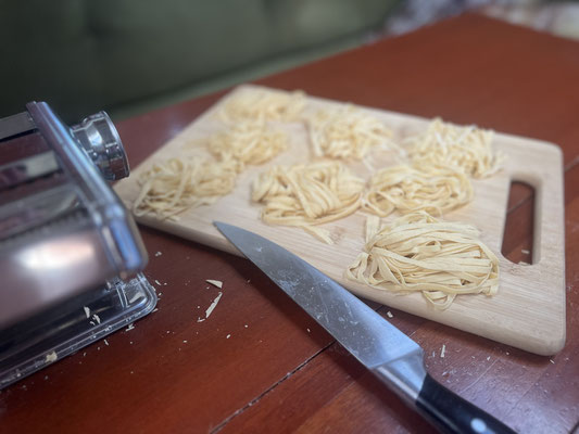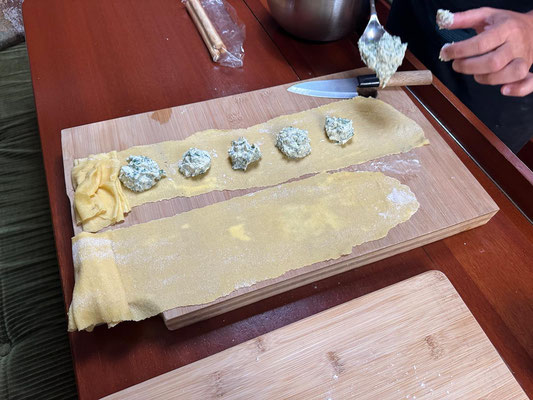 Füre Pastateig alli Zuetate zumene homogene Teig verchnäte und ne ipackt mindestens 1 Stund im Chüuschrank la ruebe.